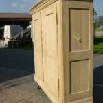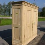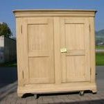 Einfach zerlegbarer Biedermeierschrank mit 2 Türen. Der Schrank war früher innen gestrichen. Die Seitenfüllungen verhindern weitgehend ein Reissen der Seiten, da die Füllungen frei für sich arbeiten können. Noch gern in der kalten Jahreszeit und wo möglich noch mit Bodenheizungen nehmen Möbel ohne Füllungen Schaden durch zu trockene Luft. Der Schrank ist noch ohne Oberflächenbehandlung. Sie kann kurzfristig den Käuferwünschen entsprechend gemacht werden.