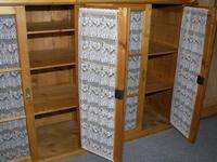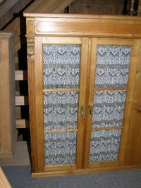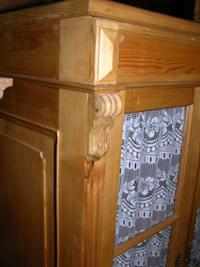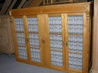 Vitrine, evt. früher Oberteil eines riesigen Buffetts. Das Möbel ist fertig behandelt. Ein paar kleine Retuschearbeiten und etwas überpolieren würden reichen.