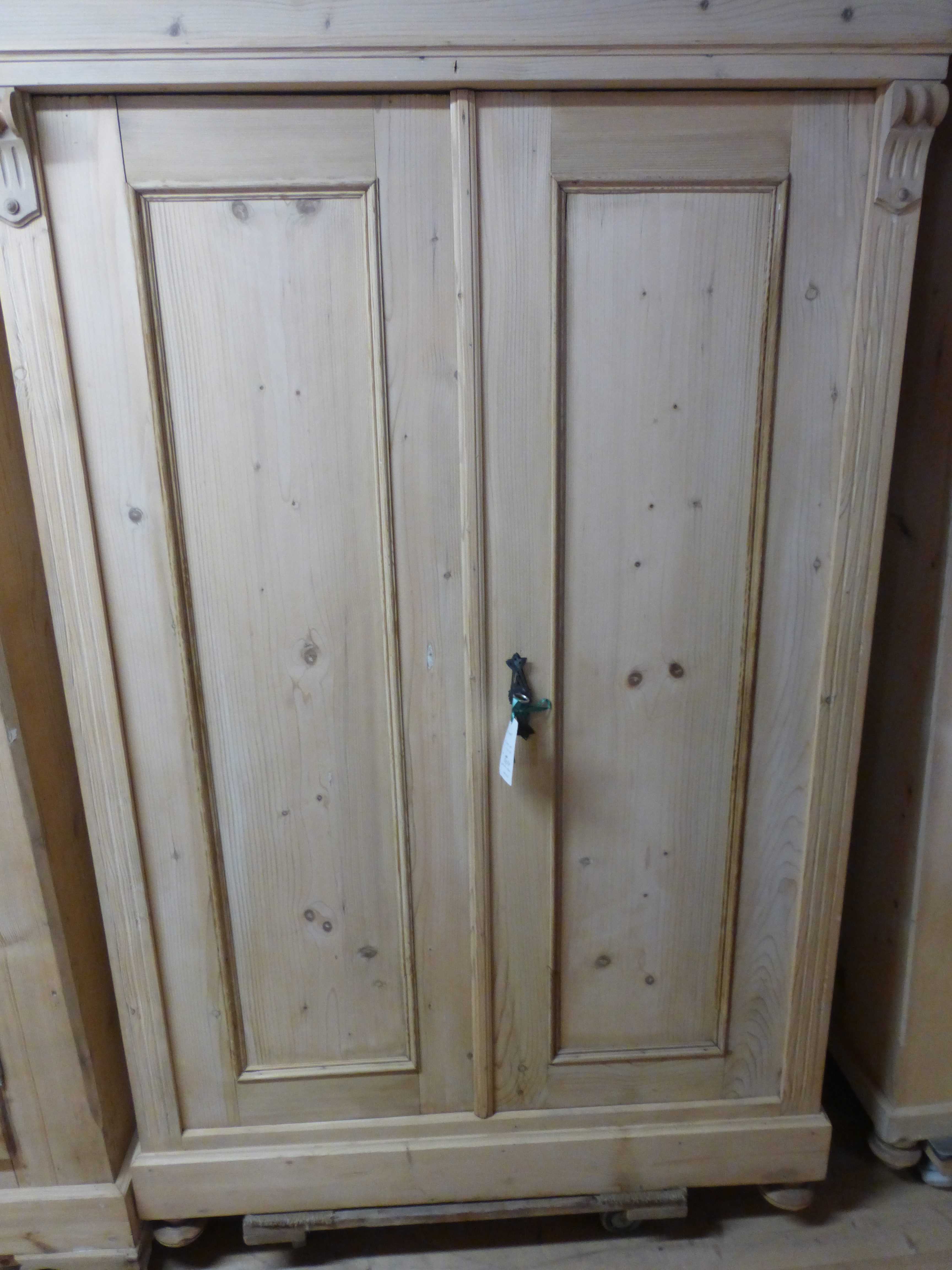 Leider habe ich kein Bild zur Hand, worauf der Kragen abgebildet ist. Aber er ist in Ordnung. Dieser gesunde, doppeltürige Schrank wurde gelaugt, neutralisiert, repariert und geschliffen. Innenleben, evt. Oberflächenbehandlung und Beschläge werden nach Kundenwunsch erledigt. Alter ca. 100 Jahre.