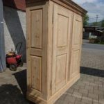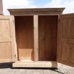 Zerlegbarer Kleiderschrank, momentan noch ohne Innenleben und Oberflächenbehandlung. Das kann sehr kurzfristig dem Verwendungszweck entsprechend hergestellt werden. Endlich ein nicht all zu grosser Schrank mit einer Innentiefe, in welcher Kleiderbügel leicht Platz haben