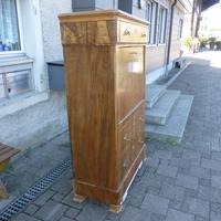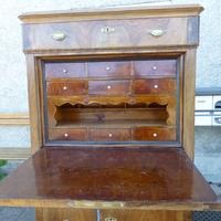 Das Möbel war gestrichen, ist aber von diesen Anstrichen nun befreit, geschliffen und grundiert worden. Die Endbearbeitung erfolgt nach Wunsch des Käufers. Der Innenteil kann herausgenommen werden. Darunter sind 3 Geheimfächer und 1 ganz geheimes Geheimfach...