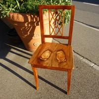 Mit Rautenrücklehne, bis dahin original, das Sitzblatt mit den Uhuaug-Ästen wurde ersetzt.