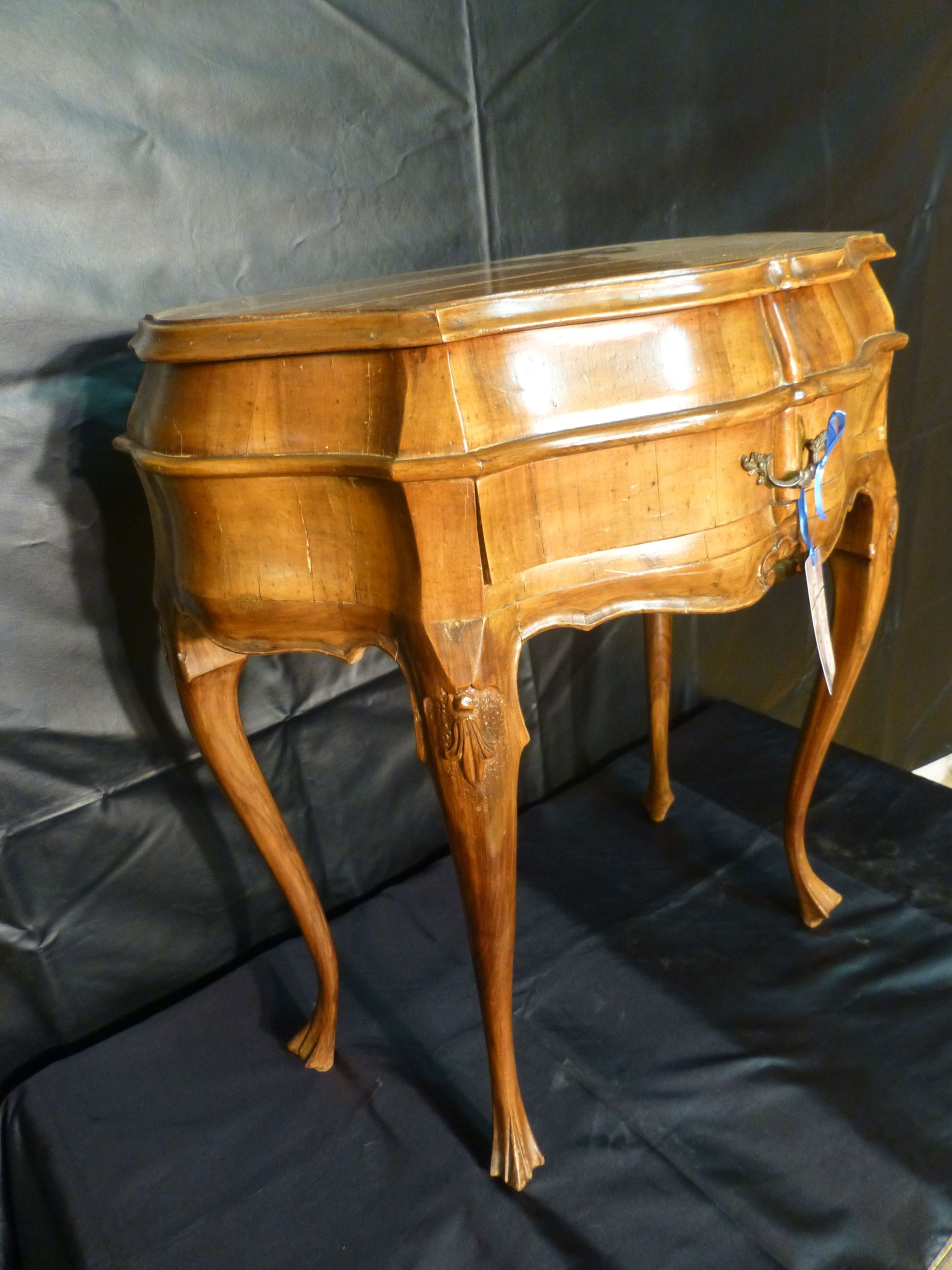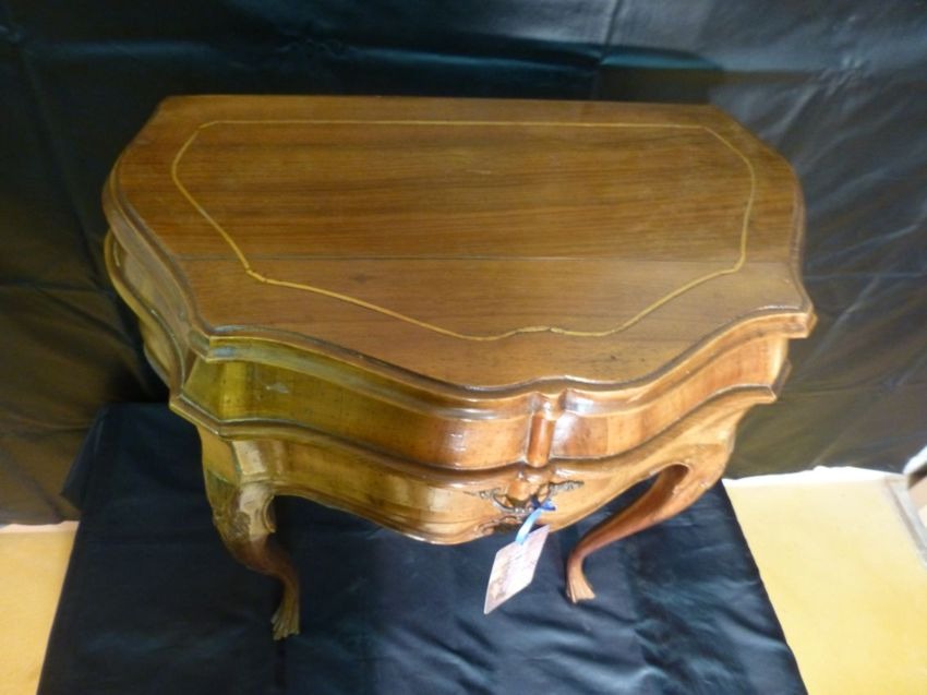 4659 halbrundes Anstelltischli mit Schublade Nussbaum