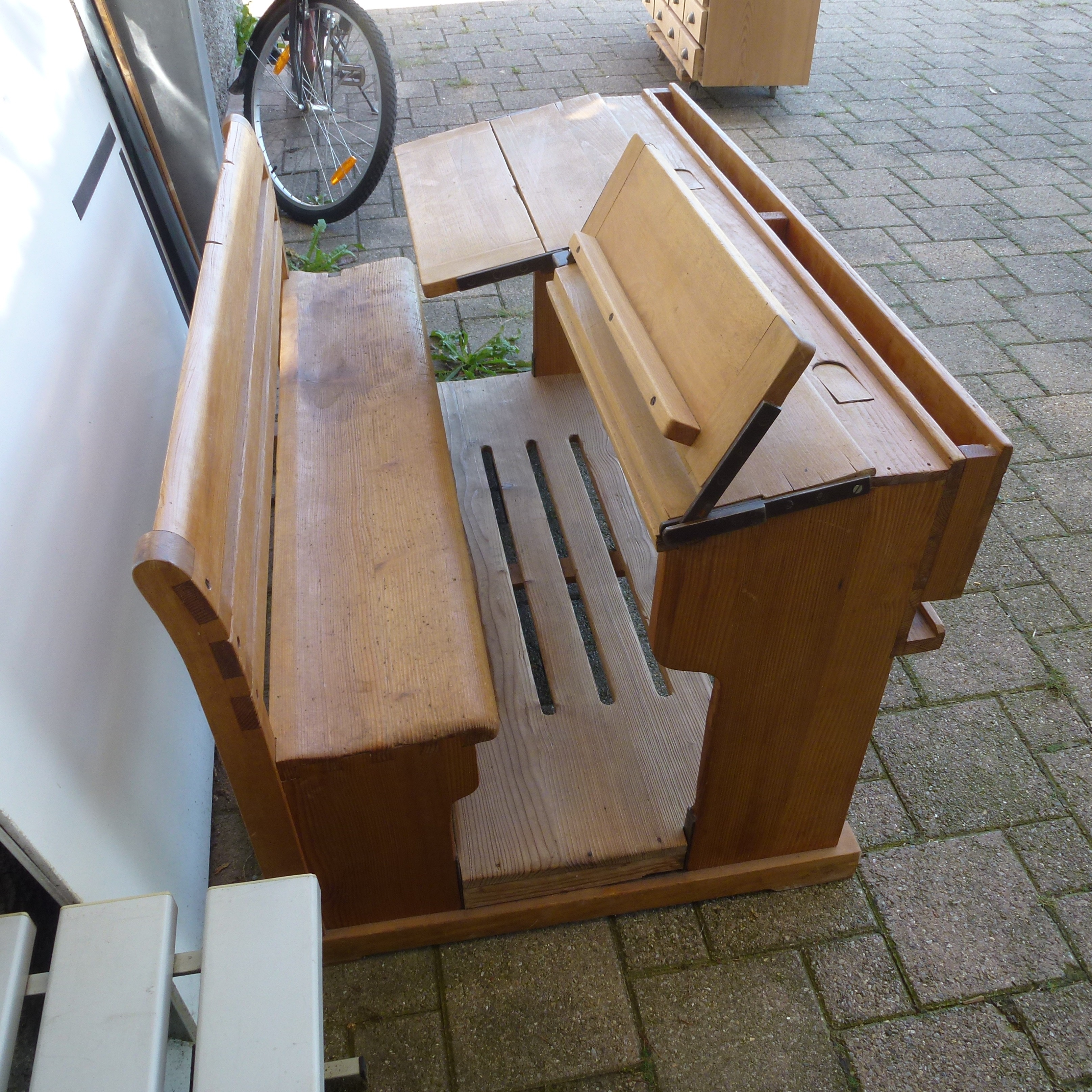 Was muss dieses Pult alles wissen, es war viiiiel länger als ich in der Schule, - halt noch ohne PC aber mit einer Schiefertafel, Steingriffeln und Tatzenstock. Die ersten Übungen im Zusammenhang mit dem Tintenfässli hinterliesen oft dauerhafte Spuren an diesem Schulmöbel. Hier jedoch waren bessere Schüler am Werk, es blieb sauberer. Aber einfach Nostalgie pur mit viel Wehmut verbunden.