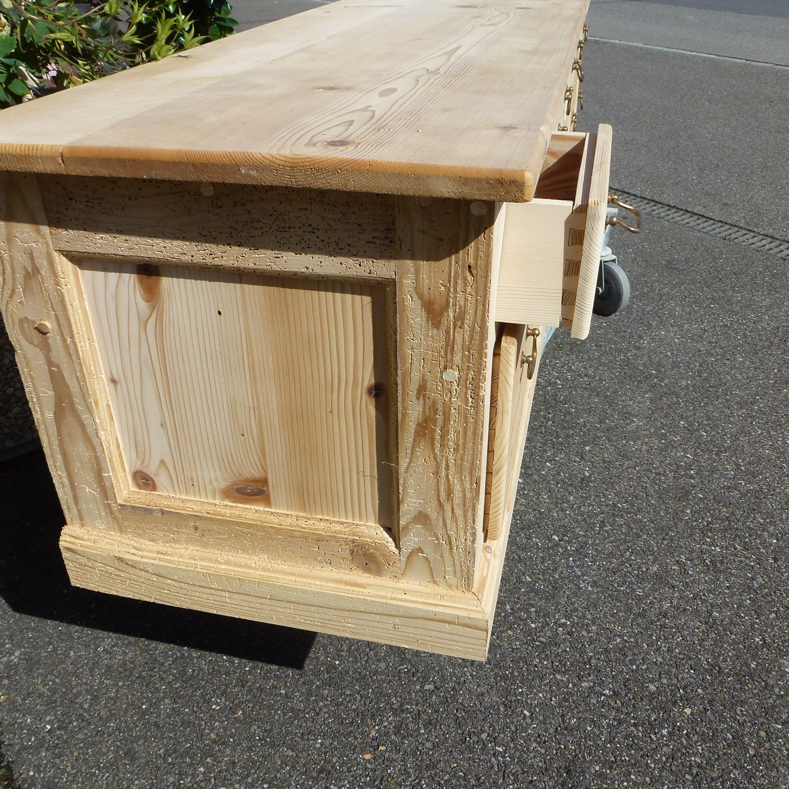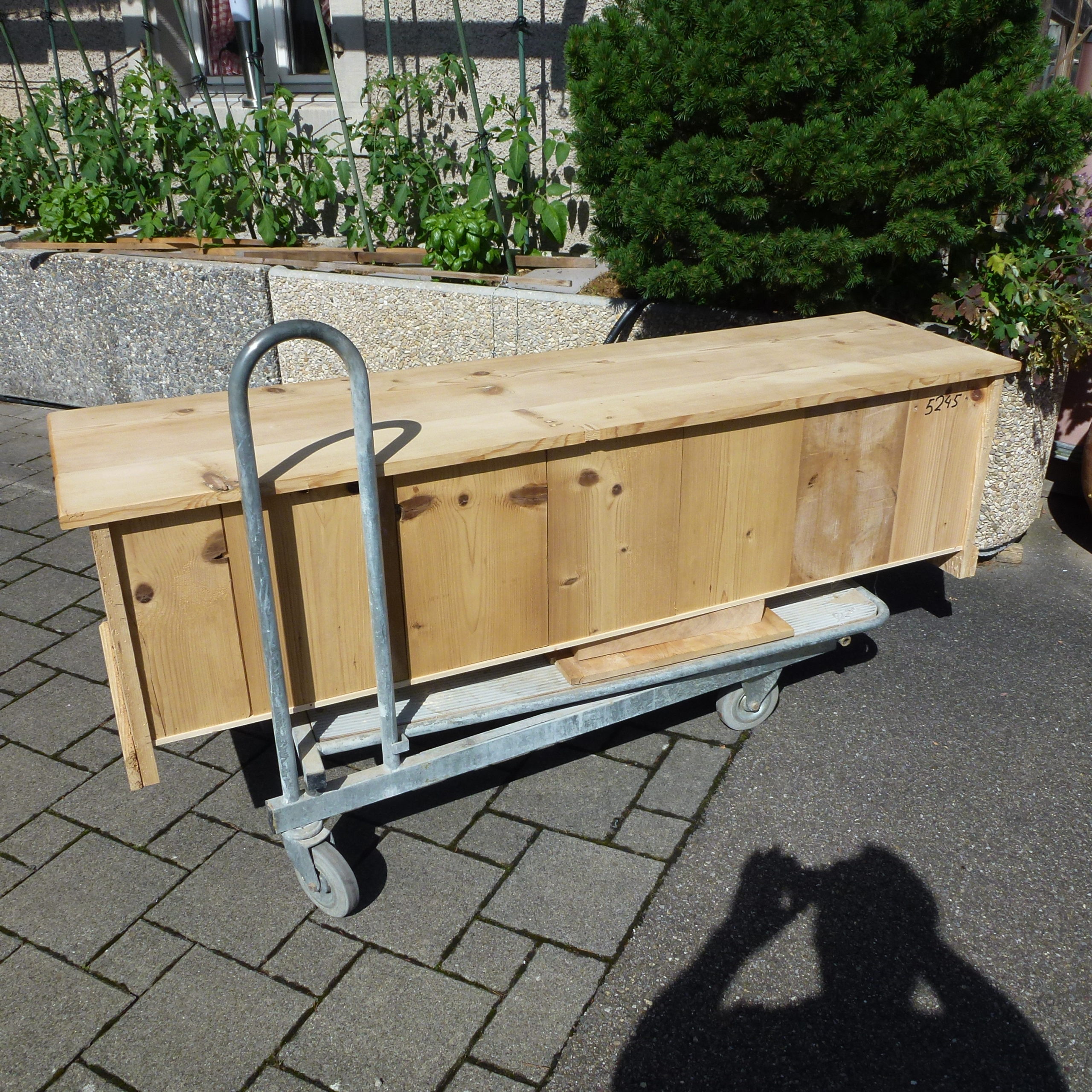 Sehr niederes Schuh - Schuladenmöbeli oder zu sitzen, Schuhe anziehen etc. mit 48 cm Höhe. Es könnten auch gegen einen kleinen Aufpreis Füsse montiert werden, dass auch Schuhe darunter gestellt werden könnten.