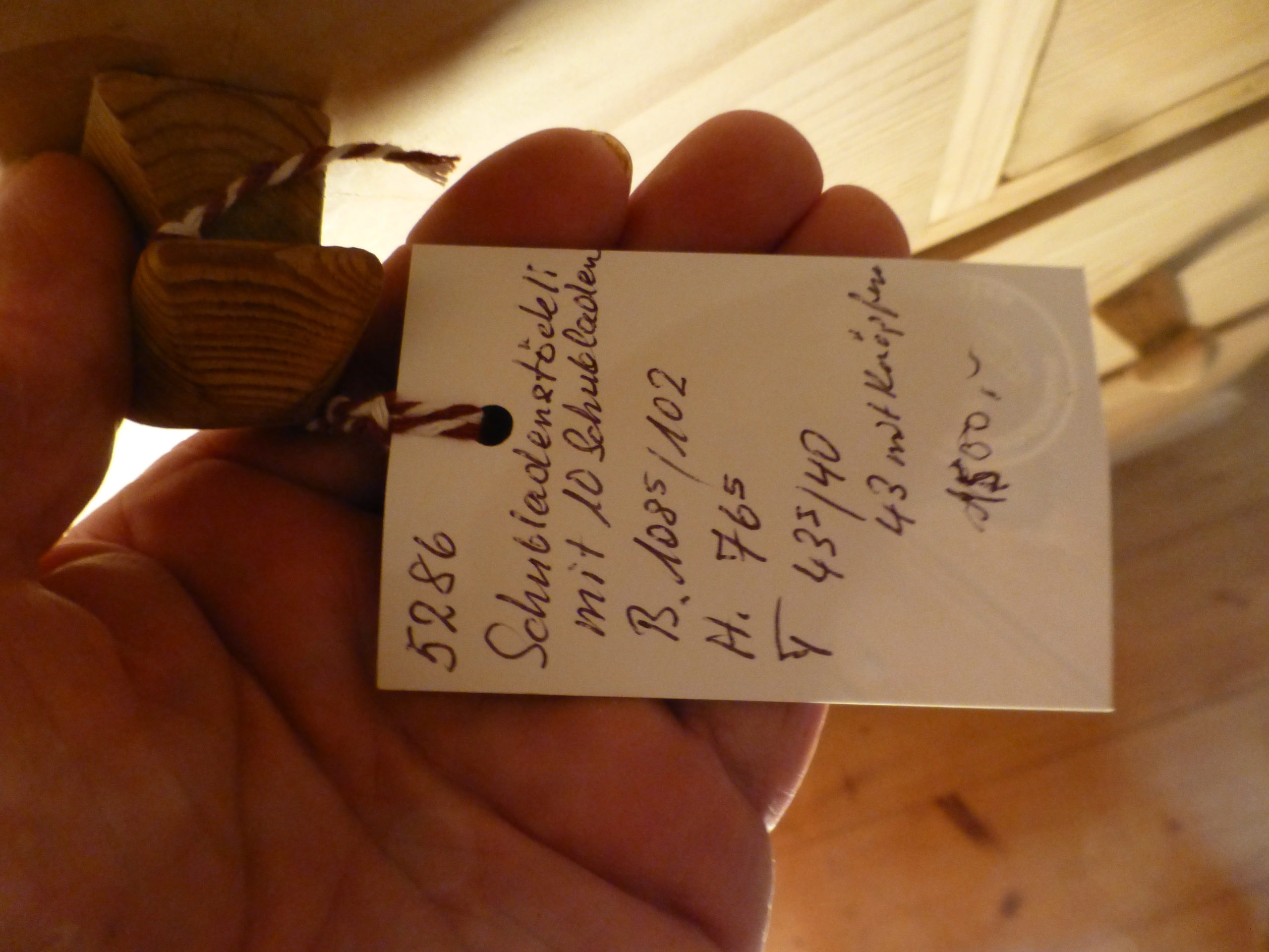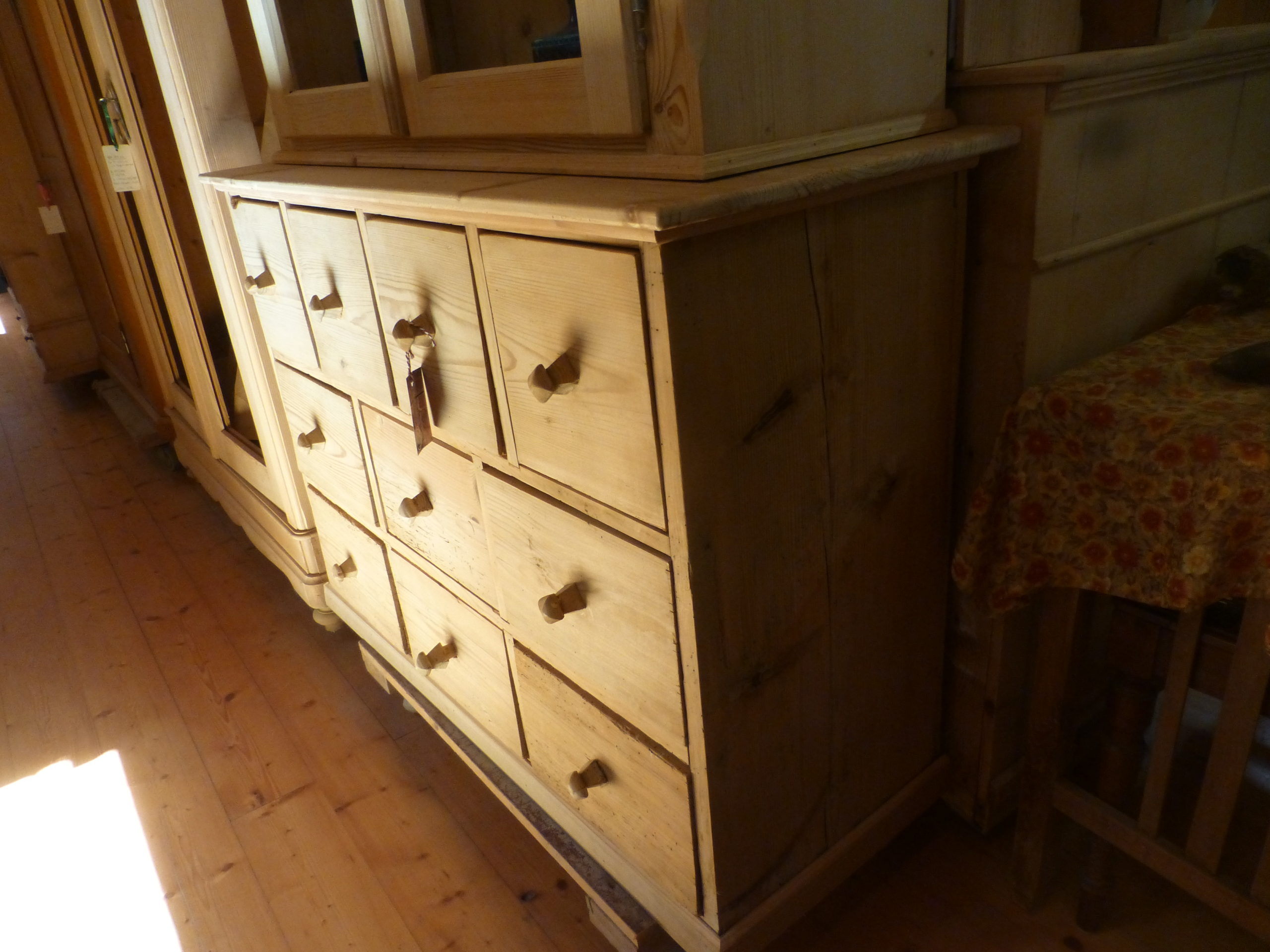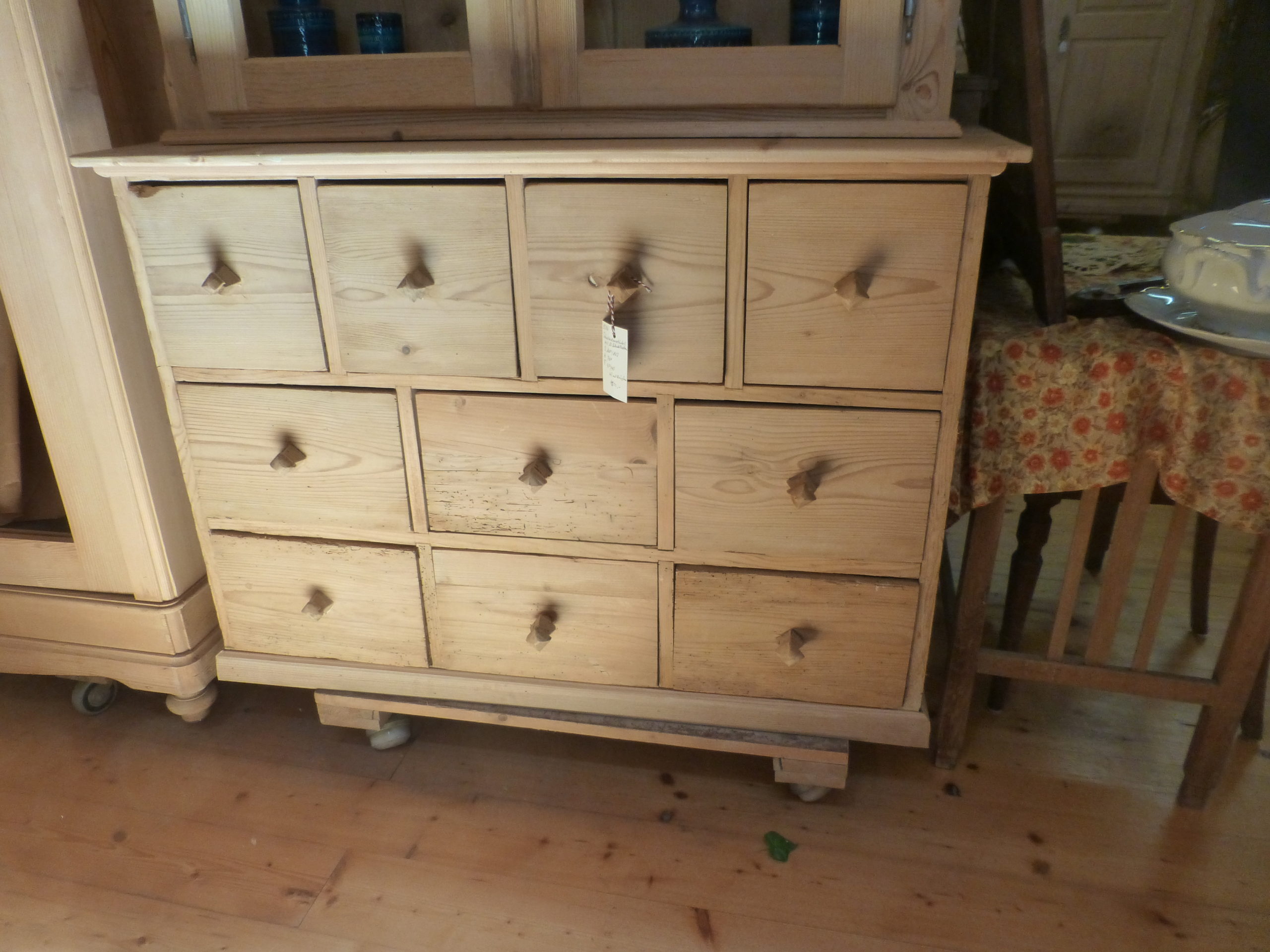 Mit 10 Schubladen, Natur- oder Rohholz mit 120 bis 150er Korn vorgeschliffen. SE=